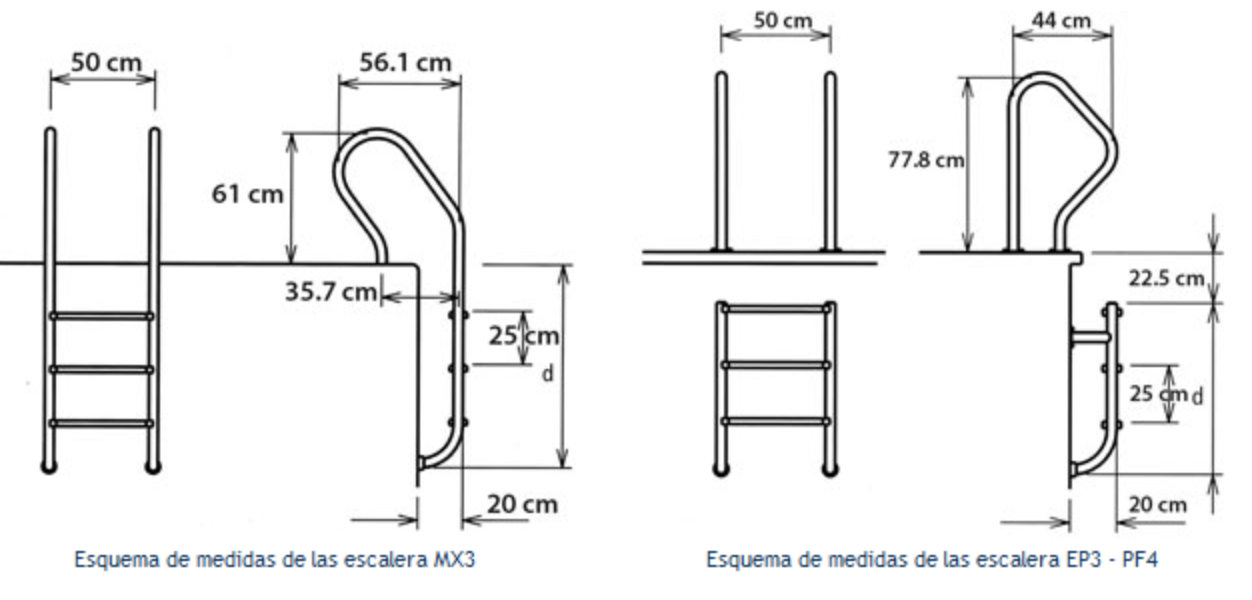 Es para fijar en la pared de las albercas, lo que permite que los usuarios se sienta más seguros y les ofrece una forma mucho más conveniente para entrar o salir de las albercas. La escalera está hecha de acero inoxidable grado 304, no contamina el agua de la alberca. Y el pie de goma ayuda a prevenir rayones en las paredes de la alberca.