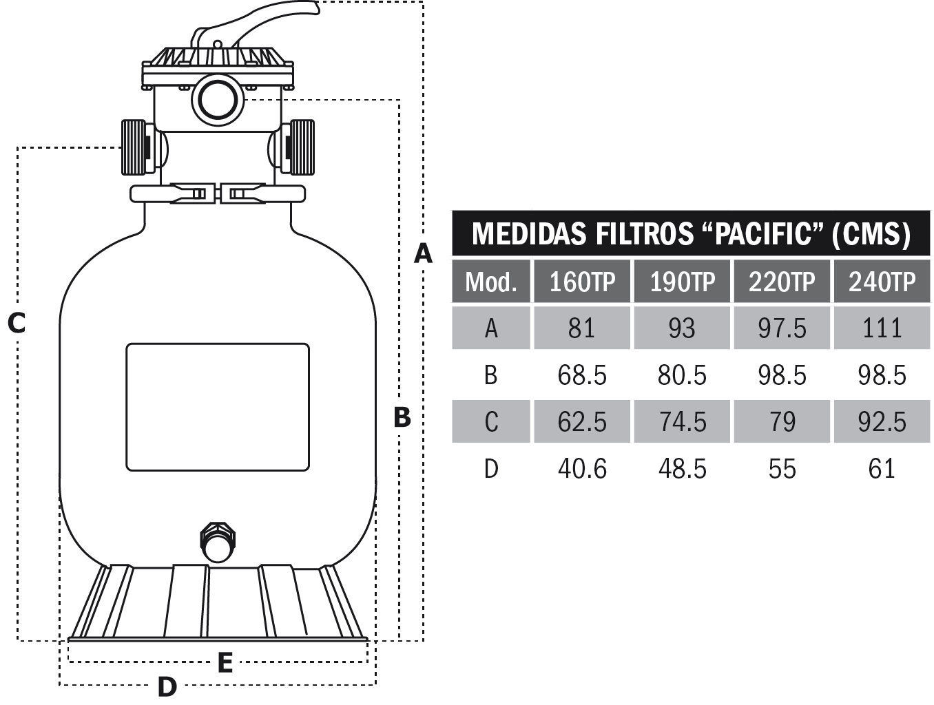 Filtro de arena para alberca serie Pacific 16″ de plástico con válvula superior marca Inter Water
