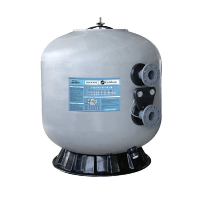 Filtros de arena para alberca serie Atlantic 32” de fibra de vidrio con válvula lateral marca Inter Water.