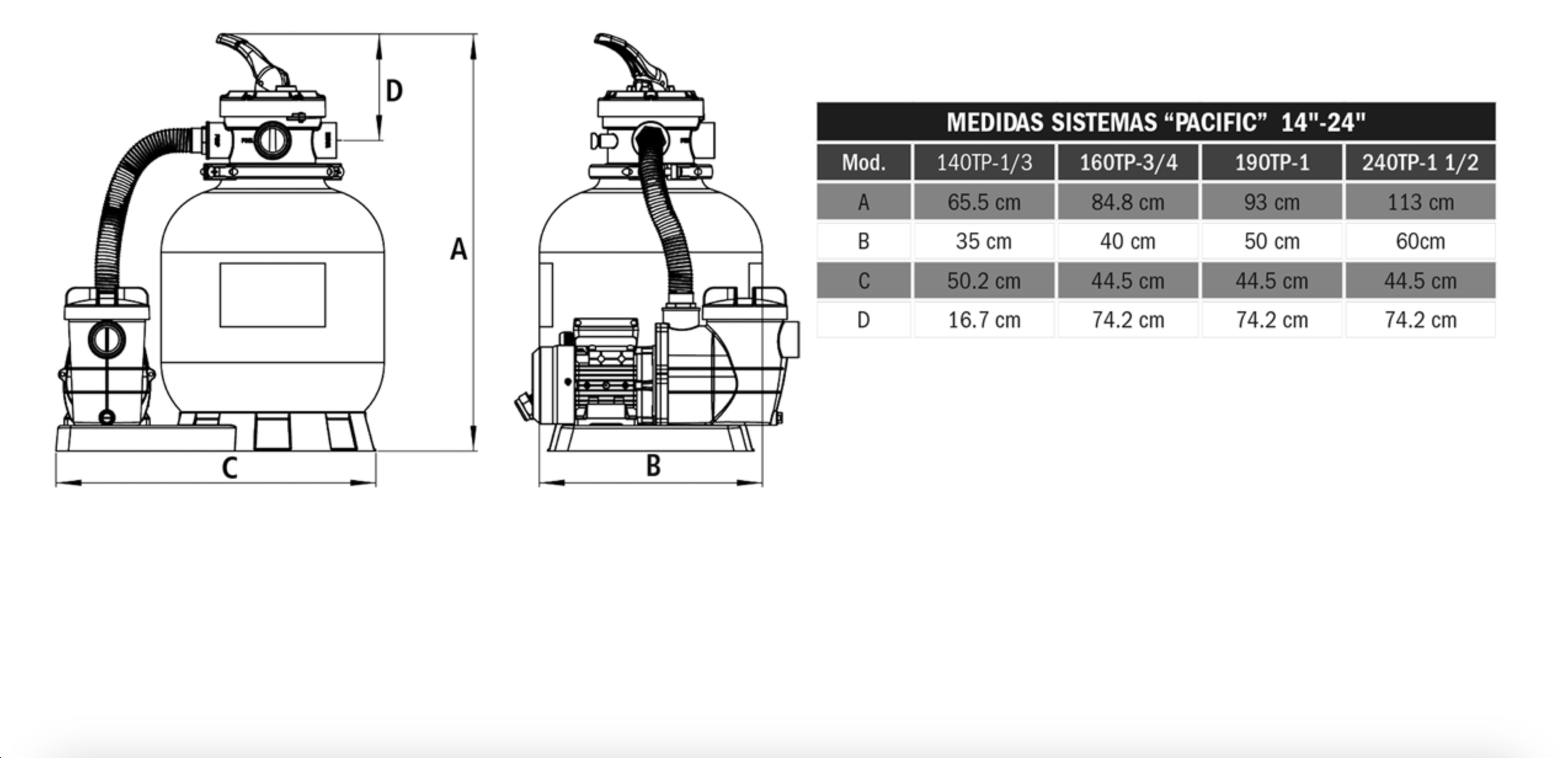 Sistema de filtracion Pacific 24″ + Motobomba Yukon 1.5 HP