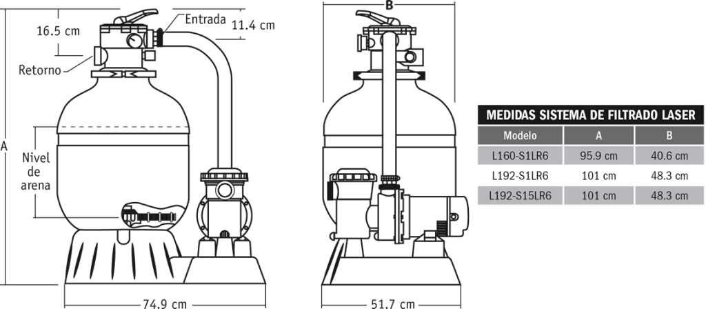 Sistema de filtrado para alberca marca Carvin con filtro Laser 19″ + Motobomba Shark de 1.5 HP